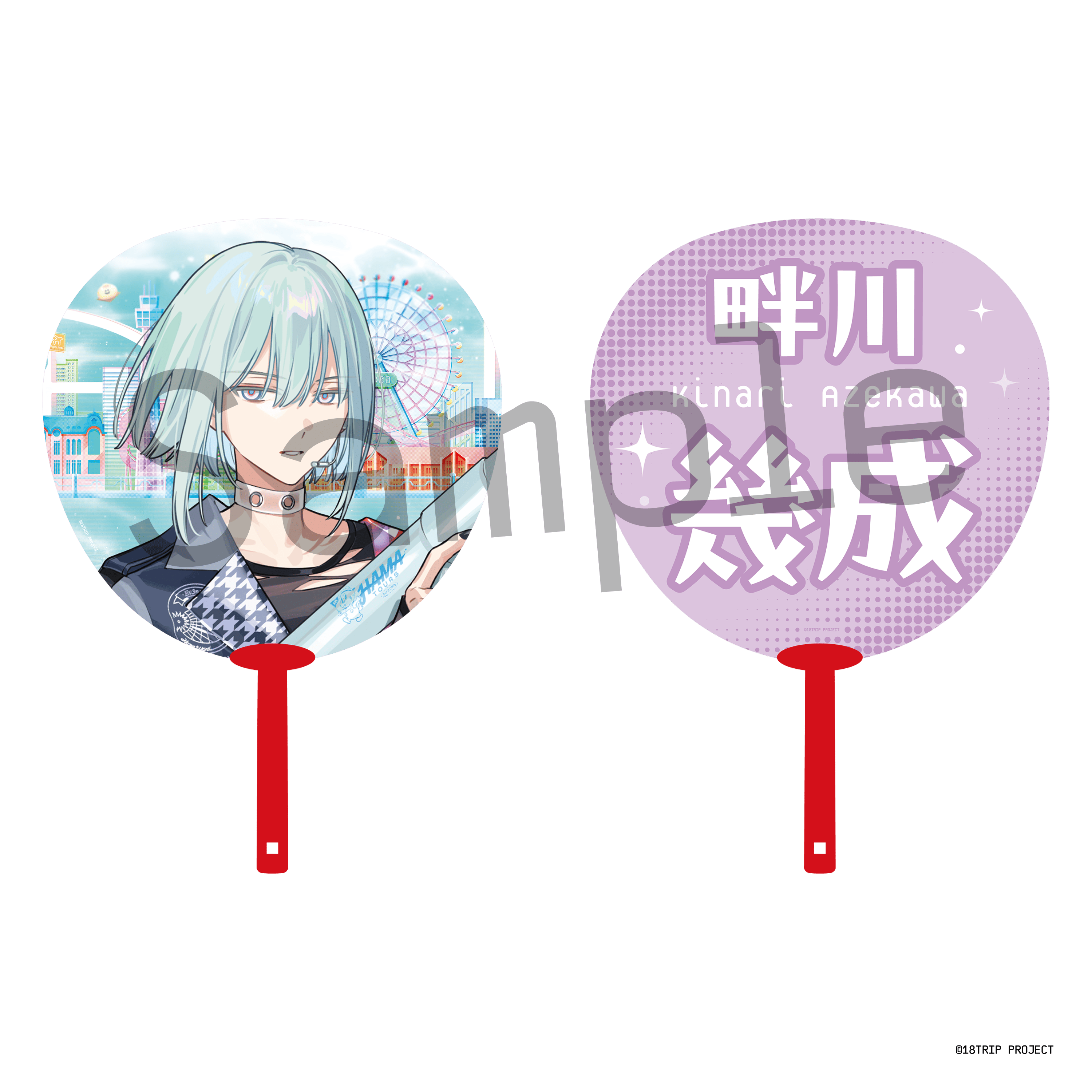 区長たちの表情が大きなプリントで楽しめるジャンボうちわ。オモテ面はイベントキービジュアル、ウラ面は区長の名前がプリントされています。