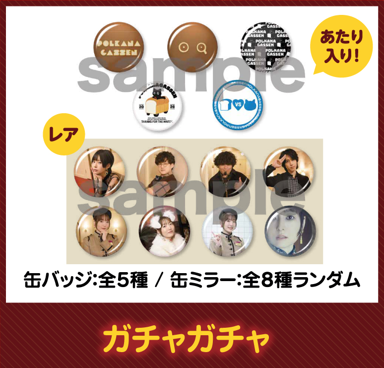 缶バッジ 絵柄全5種 or 缶ミラー絵柄全8種 がランダムに入っています。